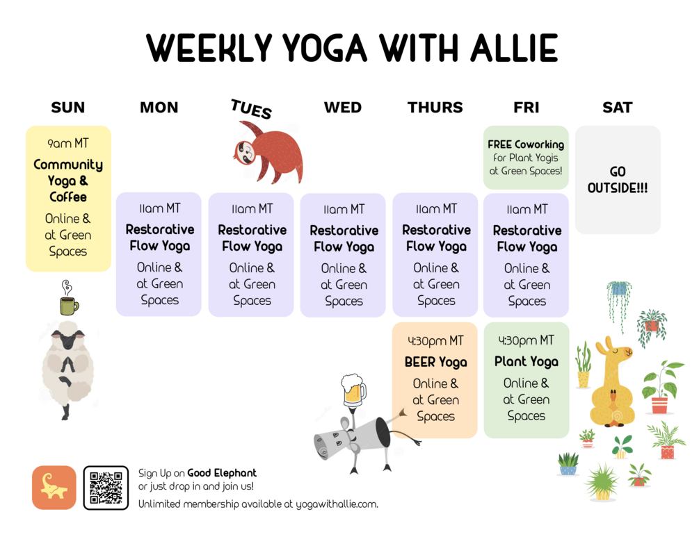 This membership gives you unlimited access to all of my yoga classes! You can view the full schedule on and sign up for each class on Good Elephant here.